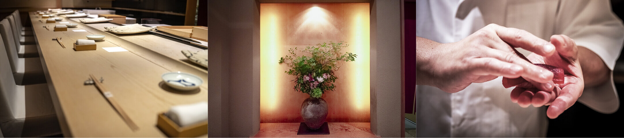 “I want my sushi to be like the character ‘一 (one)’.” These words of Shinji Kanesaka, founder of the globally renowned Kanesaka Group with restaurants in Ginza, Marunouchi, and worldwide, are actually filled with esprit. This may be becuase writing the single stroke of ‘一’ beautifully is deceptively difficult since it reveals the writer’s very character. While Japanese tend to seek “-do,” a way of life and philosophy, in arts such as sado (tea ceremony), kendo, and judo, Kanesaka calls his path “Sushi-do”. It is not merely a matter of skills and techniques, but also of cultivating character and refinement. This philosophy is passed on to every one of his chefs.