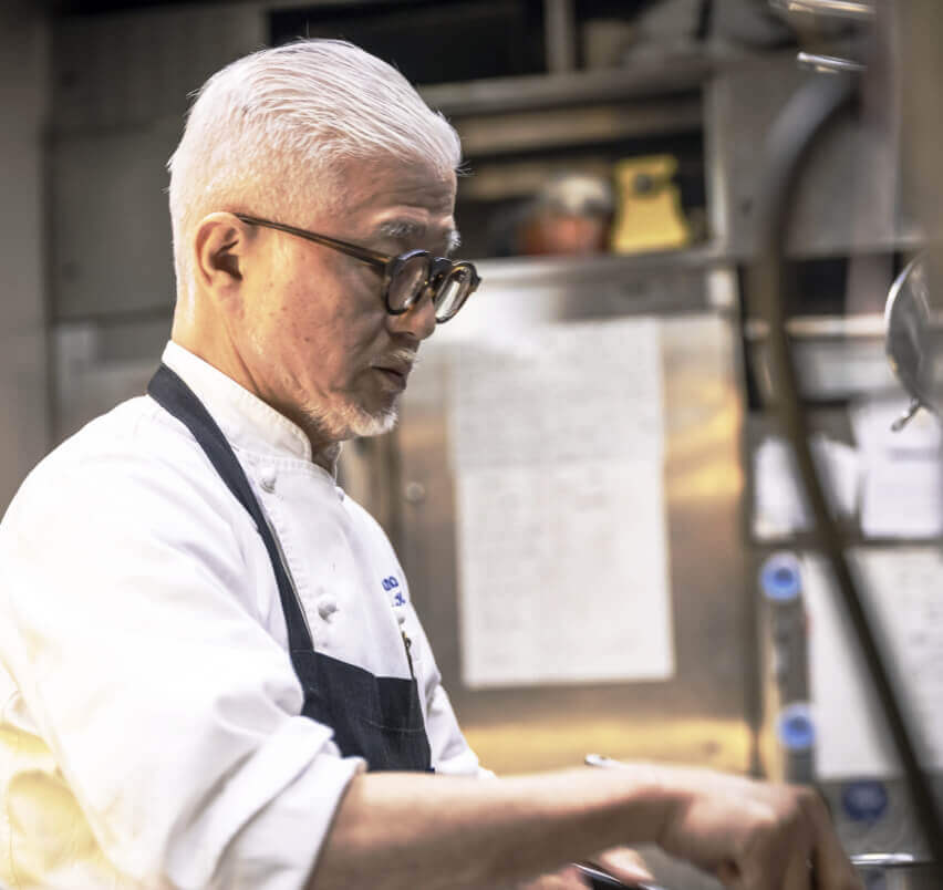 Executive ChefJunji Koga Born in Saga Prefecture, Chef Junji Koga joined Chez Inno in 1984 where he studied in-depth both the spirit and techniques of French cuisine under founder Akira Inoue. Appointed Head Chef in 2006, he has faithfully preserved the traditions of classical French cooking. Now serving as Executive Chef, he continues to present refined, elegant dishes through carefully selected ingredients and impeccable techniques.
