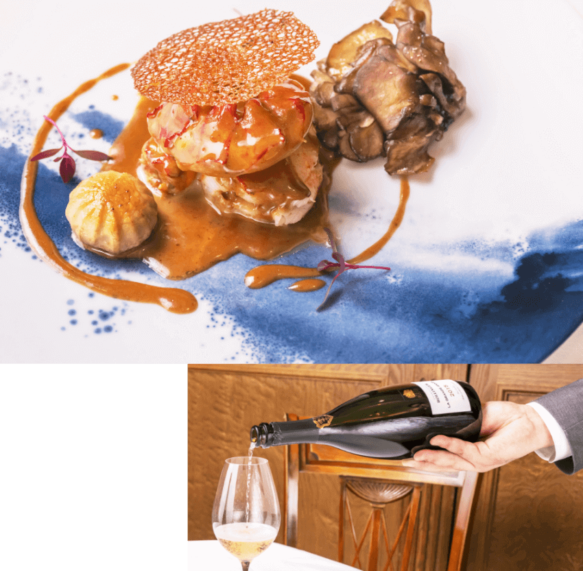 What La Grande Année and the cuisine of Chez Inno share is a belief that “the present exists on faithful inheritance of the predecessors’ values.” In this dish, the key lies in how the sauce’s umami is drawn out to accompany the lobster’s rich umami, by extracting depth from lobster shells, tomatoes, mushrooms, and more. Above all, the use of truffle is the defining element, playing a pivotal role. Through the authentic French techniques passed down across three generations from founder Mr. Inoue, to Executive Chef Koga, and now to Head Chef Teshima, we can continue to savor this unchanging flavor. “La Grande Année, as well, selects only exceptional vintages each year, consistently expressing an unchanging standard of taste. Proteins from the lees undergo autolysis, transforming into amino acids that create umami. Encouraging this process through maturation is where true craftsmanship lies and where defining techniques are passed on. With umami and aging as shared keywords, this encounter is truly a rendezvous. As the temperature rises slightly, the wine’s maturity becomes even more pronounced, making it all the more versatile as a wine for the table,” explains Executive Chef Koga.